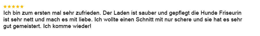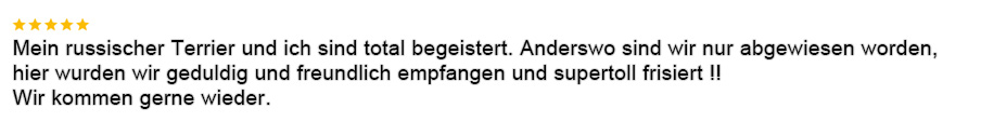 Wir bitten um Verständnis dafür, dass sie ihre Hunde für die Behandlung bei uns abgeben und nach Behandlungsende dann wieder bei uns abholen müssen. Aufgrund der eingeschränkten Größe unseres Hundesalons ist ein Warten bis zum Behandlungsende leider nicht möglich, außerdem sind die Hunde so weniger abgelenkt und die Behandlung verläuft viel entspannter.